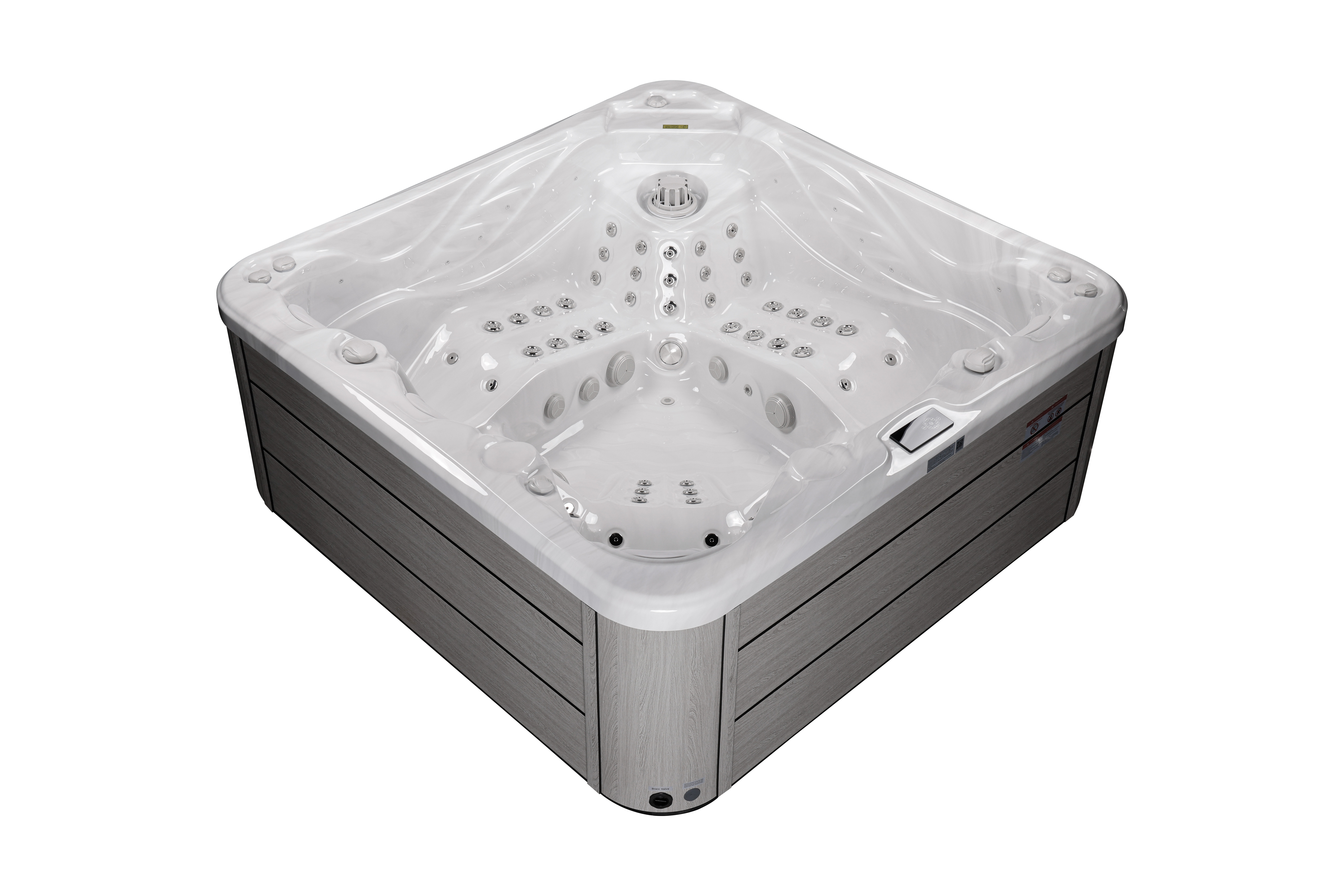 NordicSpa Khed с размером чаши 2,3 x 2,3 м идеально подходит для установки как в помещении, так и на улице. Просторная чаша с четырьмя эргономичными подголовниками комфортно вмещает до пяти человек, создавая условия для полноценного отдыха и общения.
