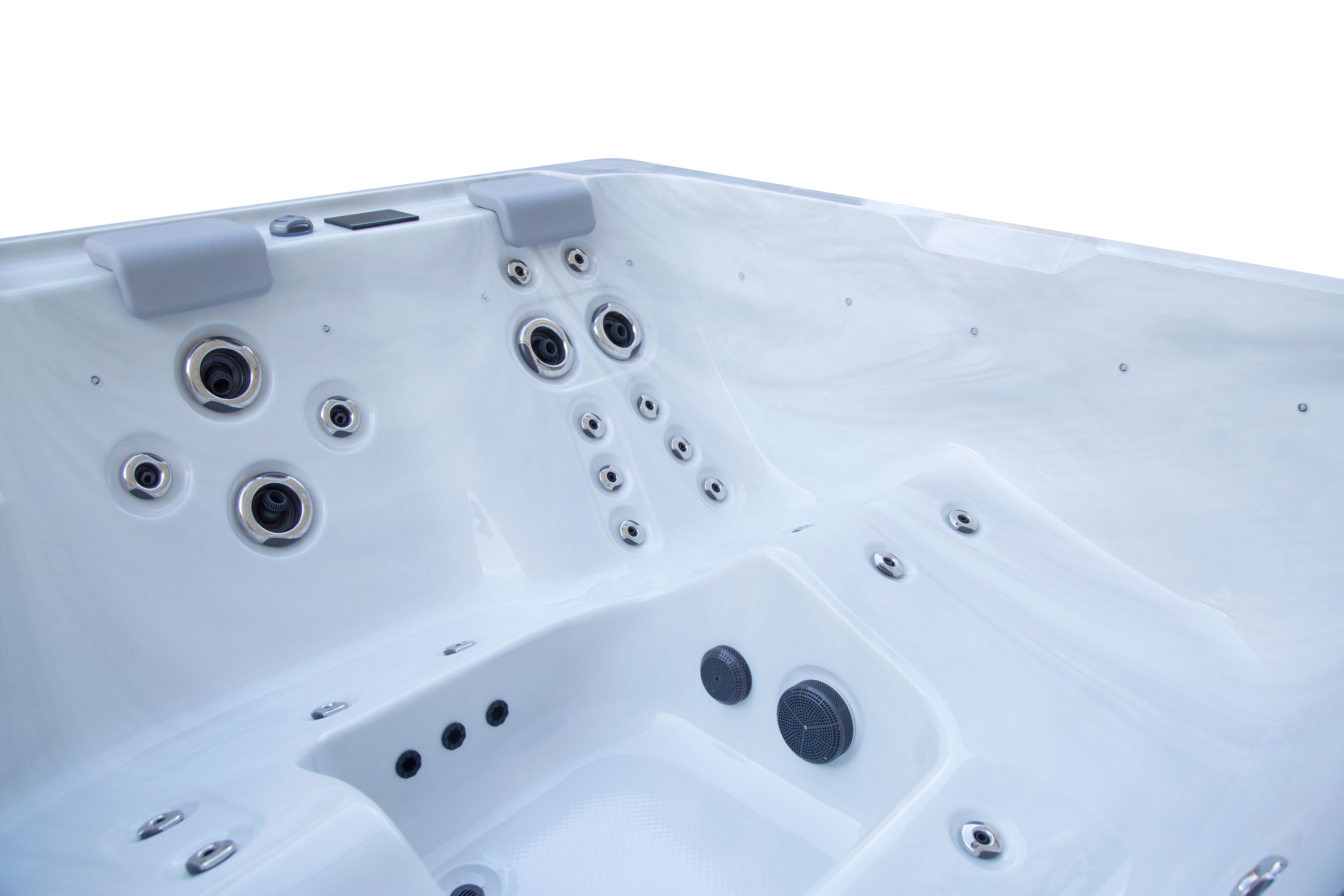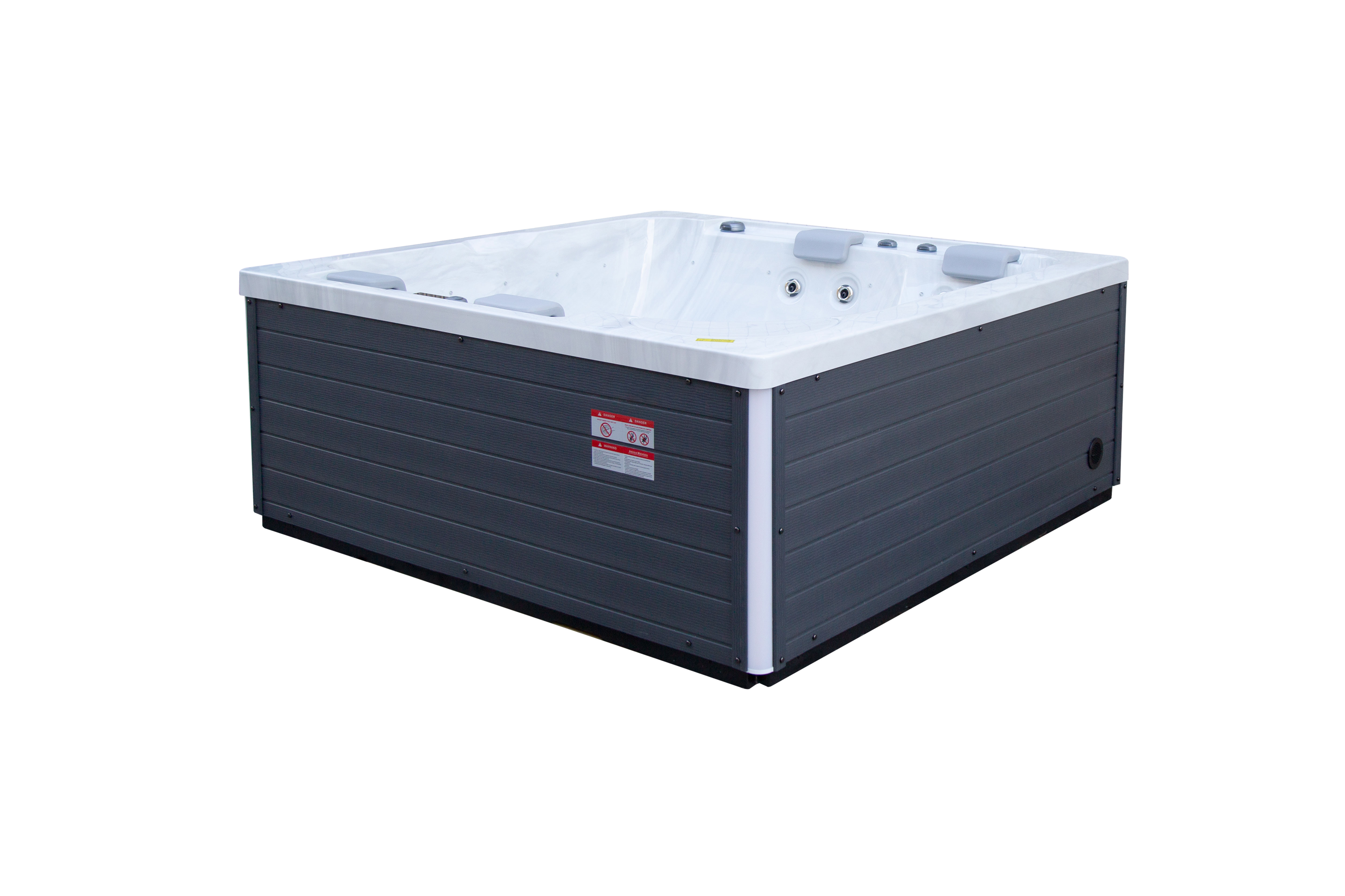 NordicSpa Liv с размером чаши 2,2 x 2,2 м идеально подходит для установки как в помещении, так и на улице. Просторная квадратная чаша с пятью эргономичными подголовниками комфортно вмещает до четырех человек, создавая условия для полноценного отдыха и общения.
