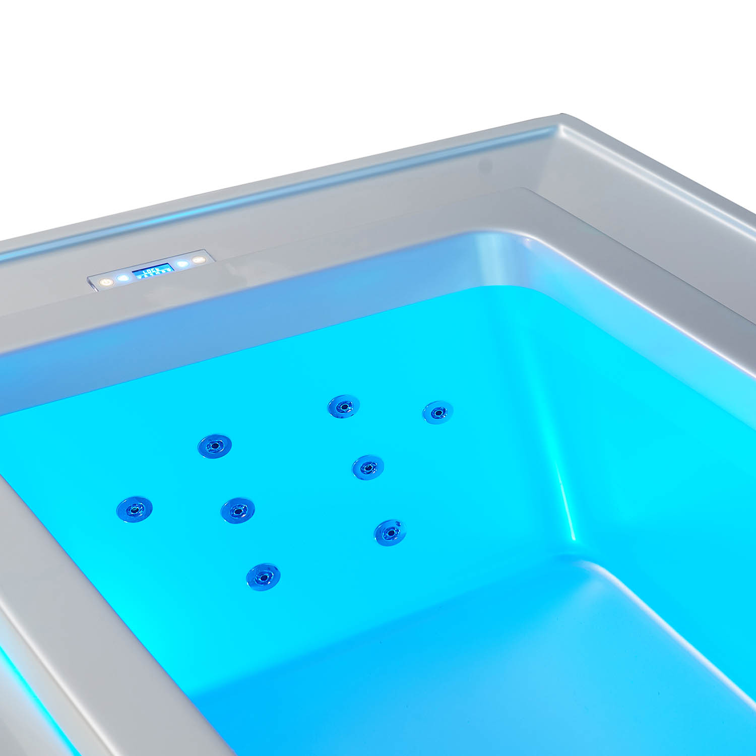 Немаловажную роль для стильного дизайна играет LED-подсветка, создаёт дополнительное освещение, поэтому пользоваться бассейном можно и в темное время суток.